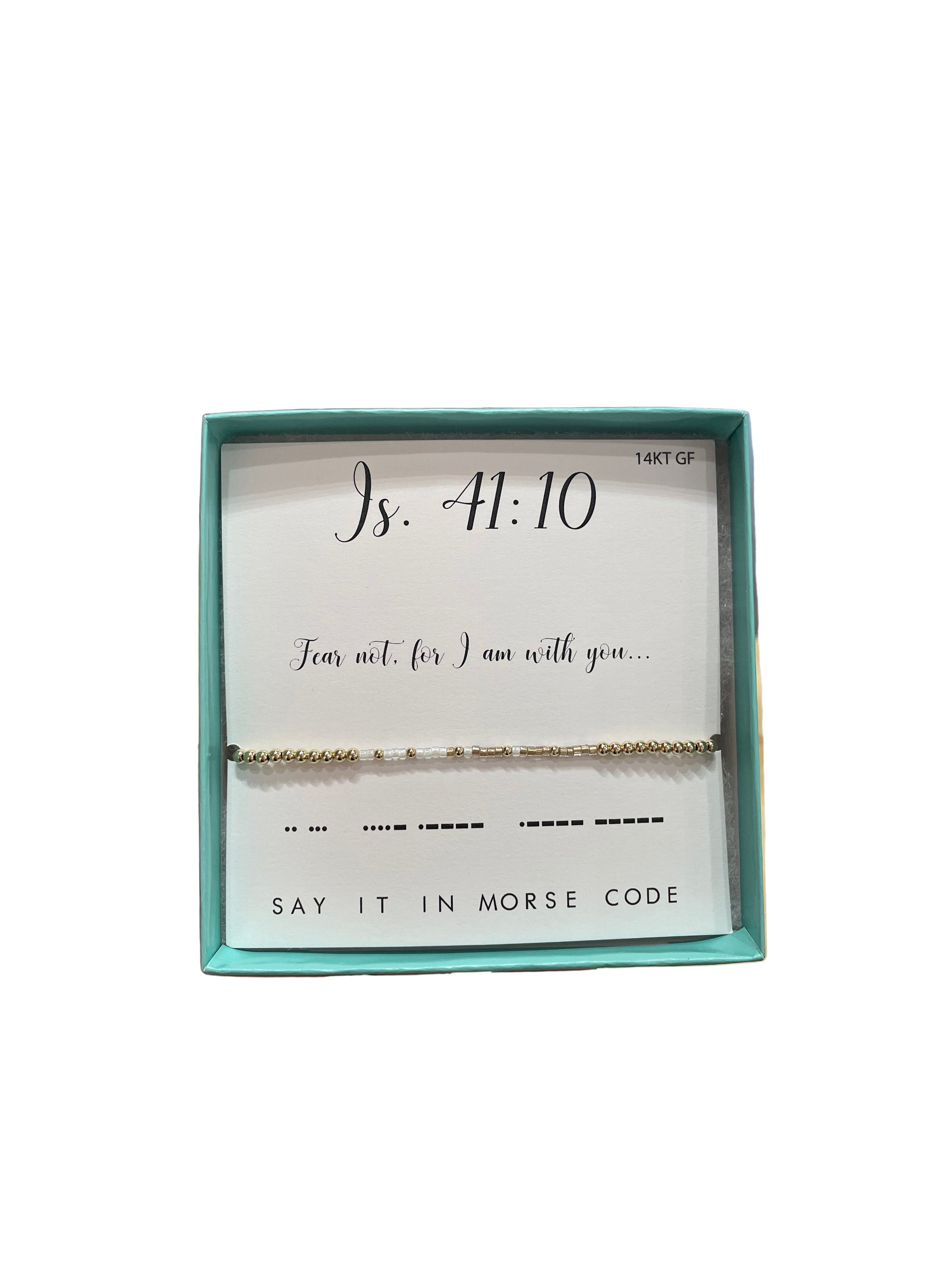 Morse Code 14K Gold Filled Stretch Bracelet, Isaiah 41:10