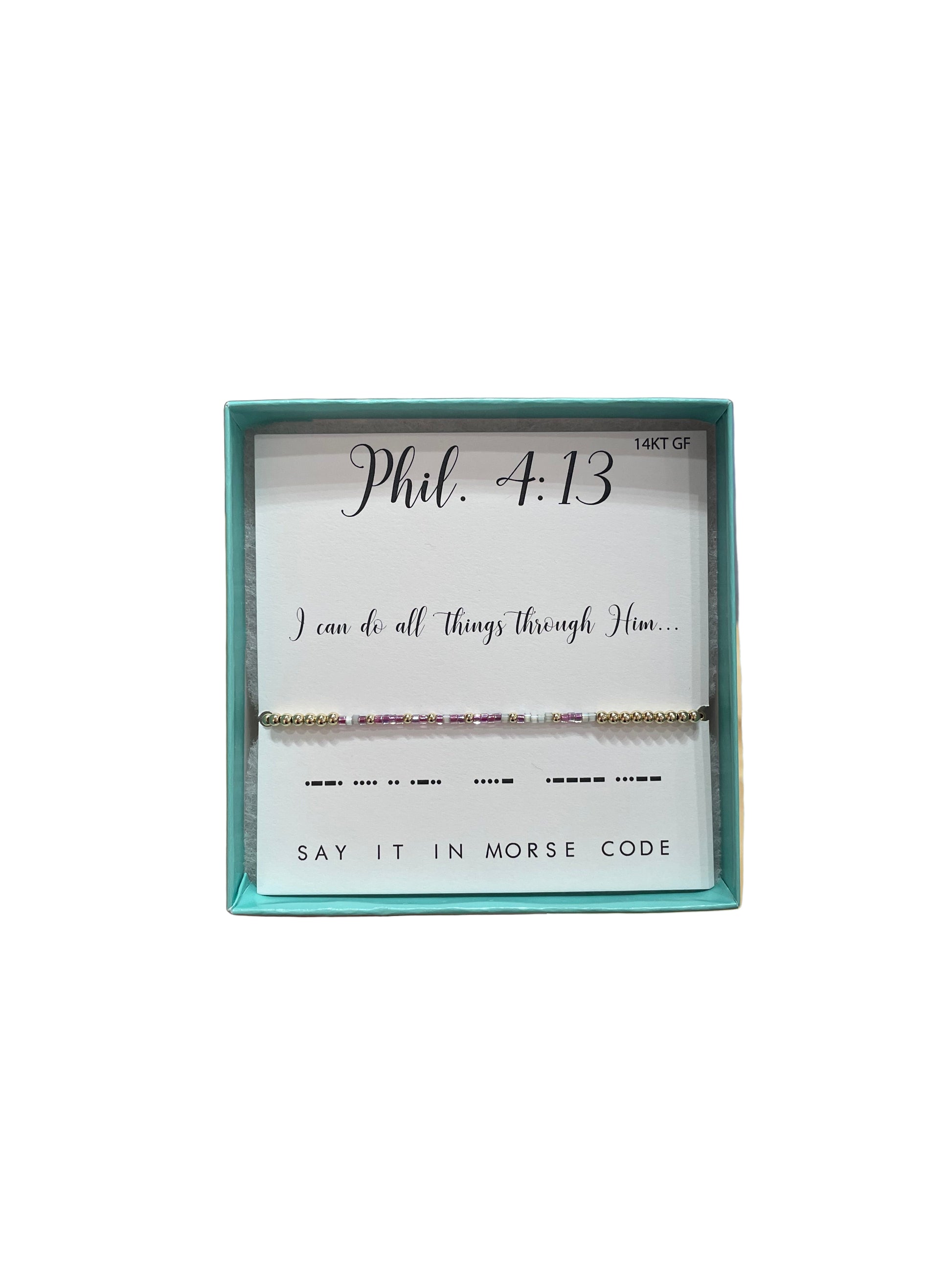 Morse Code 14K Gold Filled Stretch Bracelet, Phil 4:13