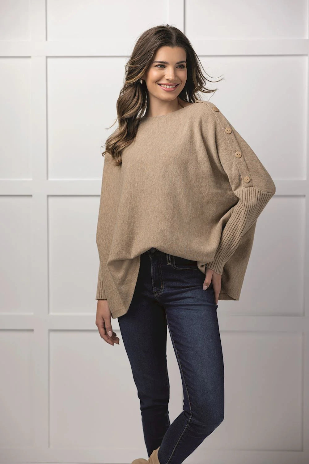 The Sheffield Button Sweater is a stylish and versatile addition to any wardrobe. Crafted from a high-quality blend of 80% polyester, 12% acrylic, and 8% nylon, this sweater offers both comfort and durability. The unique design features chic buttons at the shoulder, adding a touch of elegance and sophistication. The ribbed long sleeves provide a snug fit, while the swing hem creates a flattering silhouette that drapes beautifully. With a one-size-fits-most design, this sweater is perfect for a range of body types. Measuring approximately 26 inches from shoulder to hem, it pairs effortlessly with jeans, skirts, or trousers for a polished look. Ideal for both casual outings and more formal occasions, the Sheffield Button Sweater is a must-have piece for any fashion-forward individual.