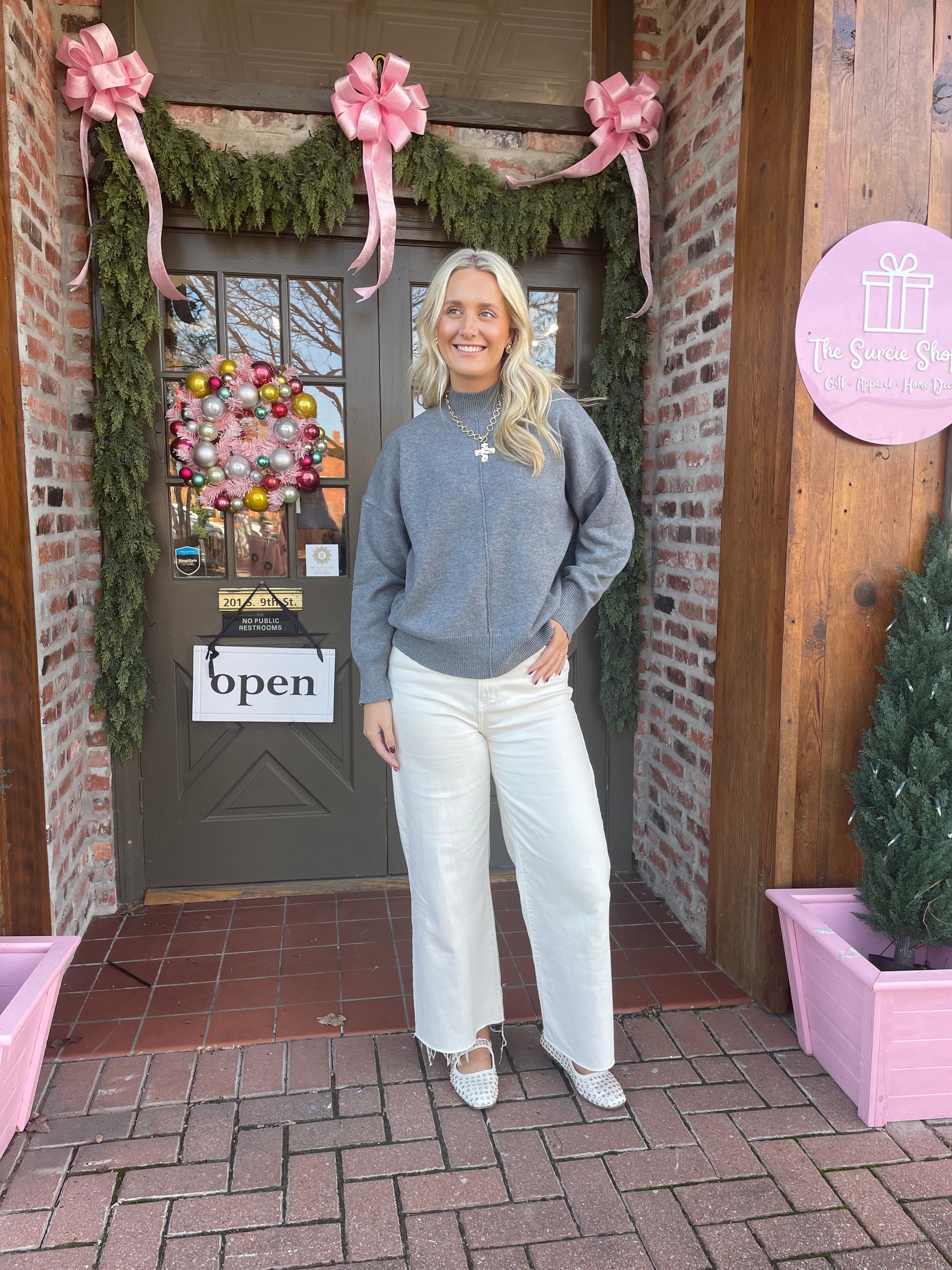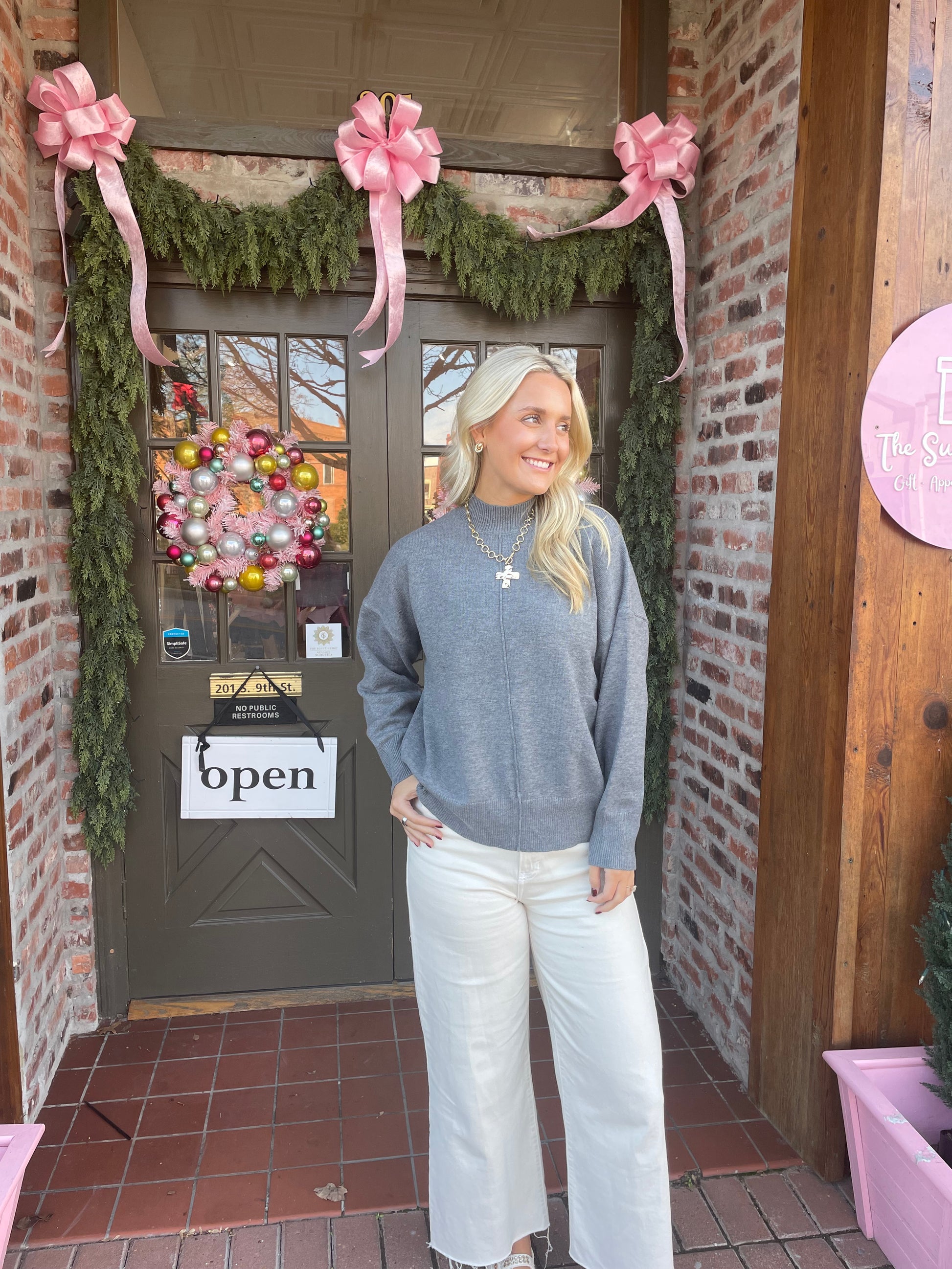 Meet your new go-to: the Slate Sweater. Crafted from a buttery-soft knit, this sweater combines cozy comfort with a clean, modern silhouette. The mock neck and dropped shoulder design give it that relaxed but put-together feel, while the center seam adds just the right touch of detail. Easy to style, flattering for all, and perfect for holiday errands, office days, or weekend lounging.